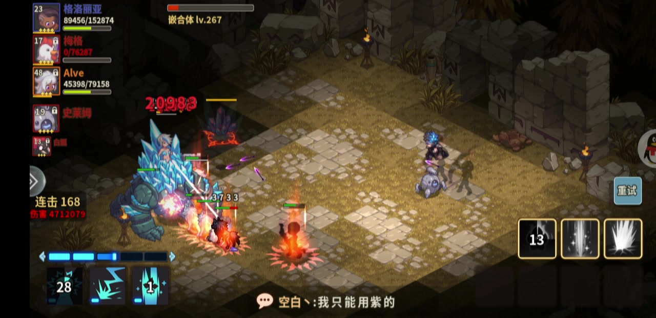 3星女王加阴影斗士2件套输出是够了,闪避嘲讽搭配合奶妈和史莱姆站住,然后雷击打断激光,差不多就过了。