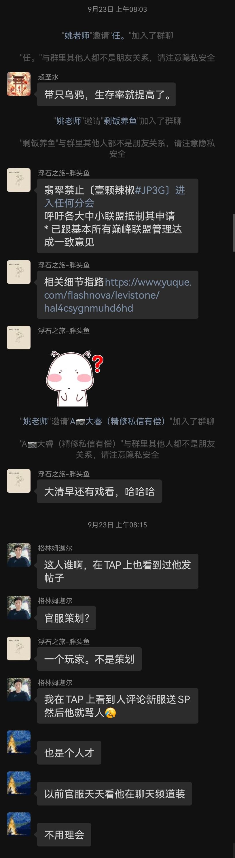 这群里绝大多数错误信息都是姚和他散布的以及疑似一个人拿两份钱(骗氪回扣 + 代肝).这人似乎在官服有个练度不低的号而且甚至常刷论坛,22 号发,23 号就看到了.很难想象他好几次展示我发的针对姚服的内容但只字不提我那些对游戏生态有益的理论框架到底是看不懂,还是别有用心塑造我阴暗人设.12.30 补:(第二张图)我觉得他可能是眼红我的 impact毕竟我那篇 tap 置顶的合