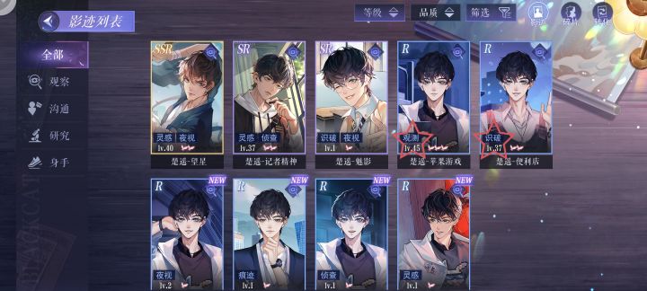楚遥的卡,我是真抽不到🙃图里那张1级SR是我下午刚出的,然后没得体力去养他了😤