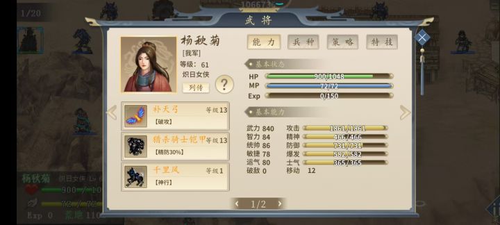 (6)地图通天涯中拿秘籍的那一块区域没有飞溪或者王器传送是出不去的,所以这里第一次拿秘籍需要2个人,一个人拿秘籍,一个人留在最下面,拿完秘籍后下面的人踩点回清风山崖。结算后第二次进入活动关再只上阵杨延嗣一个人应该也能完成成就【从一而终】。(大佬请随意)(7)本活动关难度较大,点位很多,需要跑很长的图,大佬们可以直接全程用杨延嗣一个人,两次均选择困难,属性不够的朋友可以攒几个月元宝或者小氪一波,买些加属性的特技和加移动的装备,比如猎杀套的二动,v群的大佬推荐选择永恒高阶(属性),暗武苍穹(行动),辅助可以带个逐日麒麟既能加移动又能凑神器套,也可以带王器,这样就能一个人打全程。