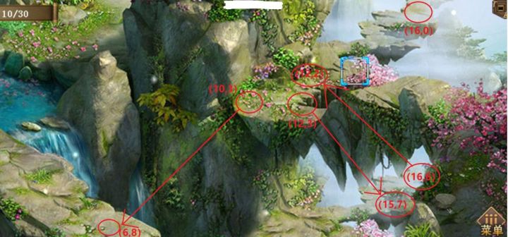 (1)三清密林到清风山崖:(19,4)(19,5)(19,6).