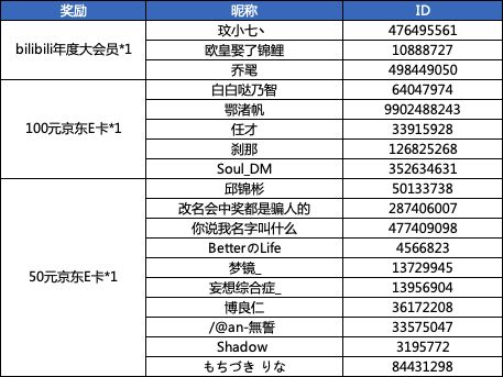 【有奖活动】bilibili大会员、京东E卡抽奖活动大公开!填写问卷就有机会!(已开奖)