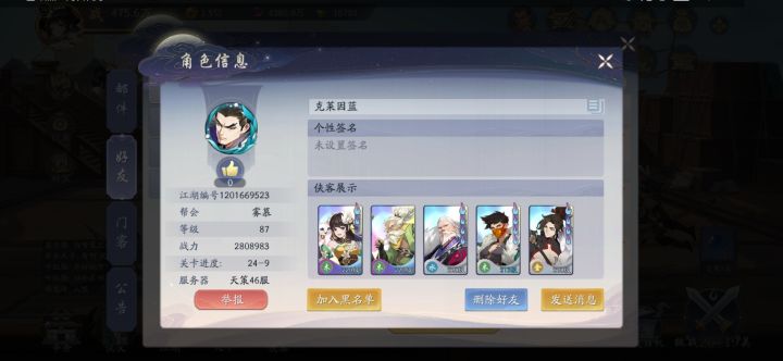 闲来无事看到了这个,门客申请里面有个160w的九黎,然后他点开装备全白装没毛病,然后我从好友列表找到这个人,点开他的九黎发现装备完全不一样了,这不会是官方托吧😱😱