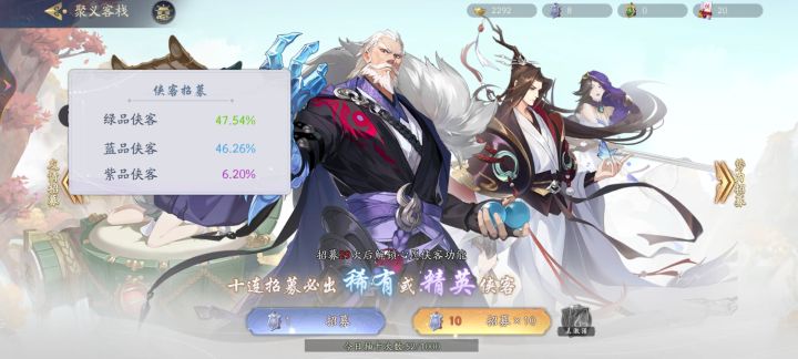 绿品侠客是来搞笑的吗?招到了直接分解😂。游戏做的太不用心了吧?十连还有一半概率是炮灰。怎么不来些90%概率出铜币?