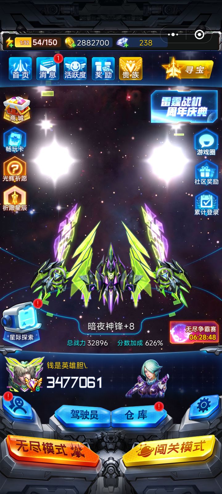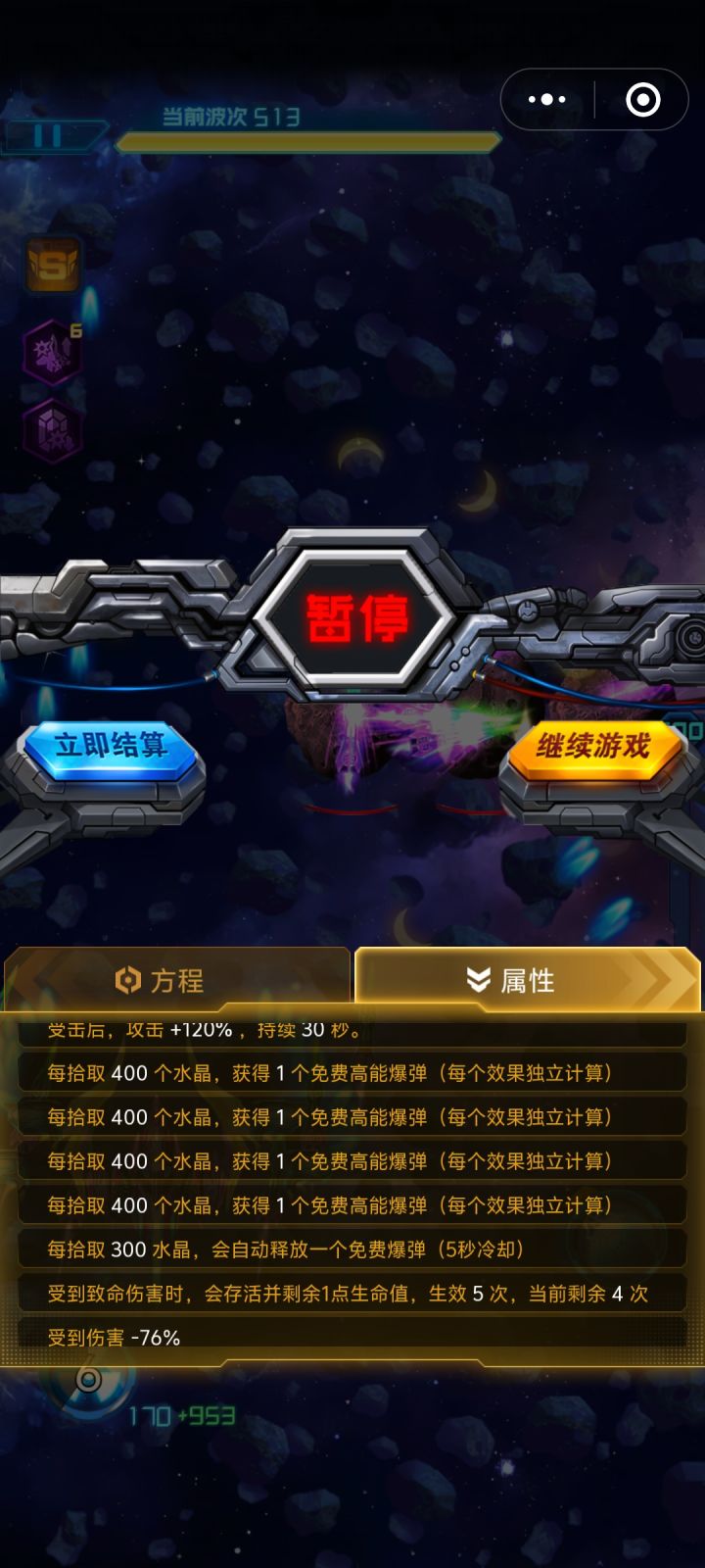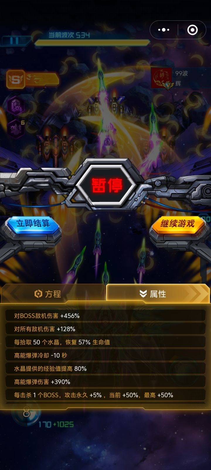 雷霆战机深空巡航333波保姆级教学来咯Hello各位机友晚上好啊,本人分享一下自己过巡航333波的经验,想必大家都看过各种的攻略,今天我就用最直白通俗易懂的方法教会你,首先前面30波一定要有方程重置次数,然后爆炸子弹装水晶这个方程,在子弹多的时候放炸弹能多拿几十个方程之后基本就无敌了。不喜勿喷,谢谢。最后如果你觉得我的方法对你有帮助可以进群交流点赞收藏转发,祝你顺风顺水发大财!#雷霆战机集结