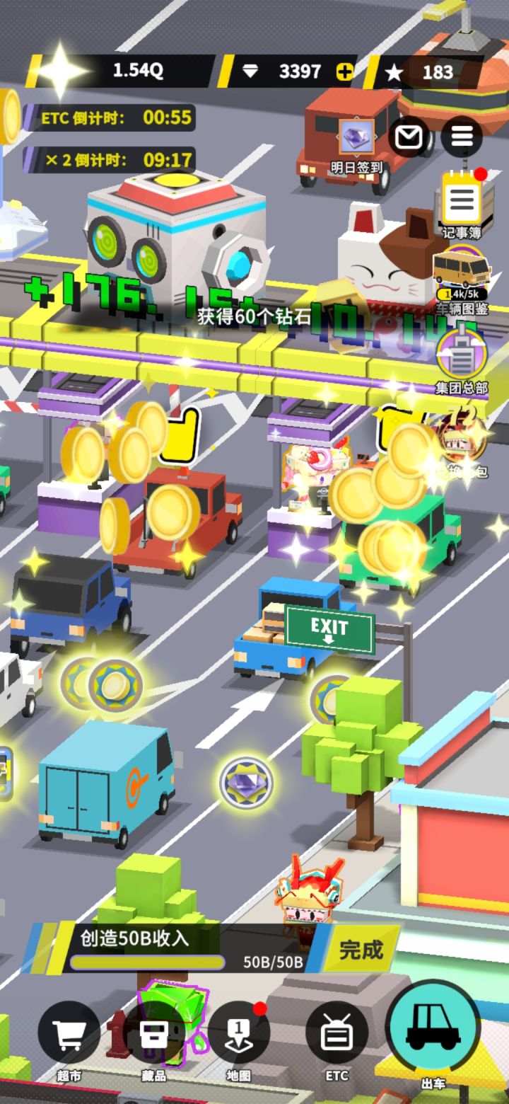 1,游戏开始的时候,玩家之拥有一座收费站,随着游戏进程,玩家可以开辟新的道路和收费站;2、利用赚到的金钱开辟出更多的交通网络,就可以设置更多的收费站,赚得更多的利润;3、升级道路,让道路的承载量更大,每天通过收费站的车流量越多,收益就越高哦。4、可爱的游戏画面,轻松的经营放置玩法,在游戏中体验躺着收钱的快感