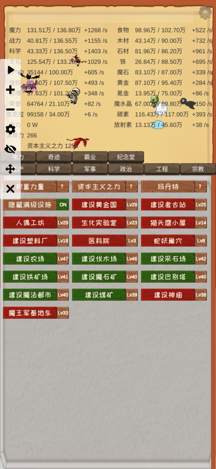 慎重魔王,现在二周目准备开世界大战,生产肯定点满了,想问问工程10级,信仰2000万大概够不够用。