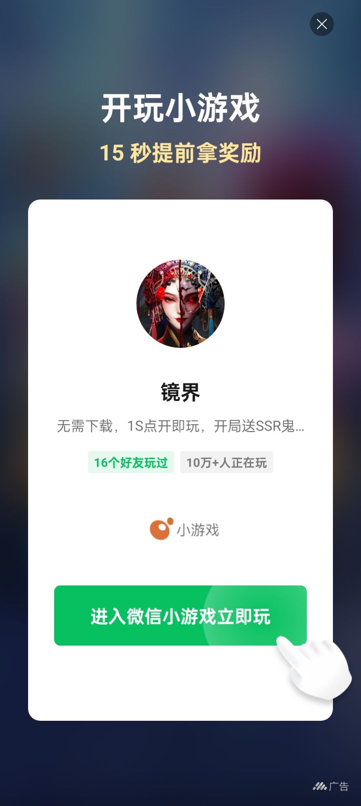 打开游戏15秒后回到魔王归来界面就变成图二,没有奖励。或者一直卡在图一,只能强行关闭,也没有奖励,还会显示广告加载失败,要重开才会再加载广告。