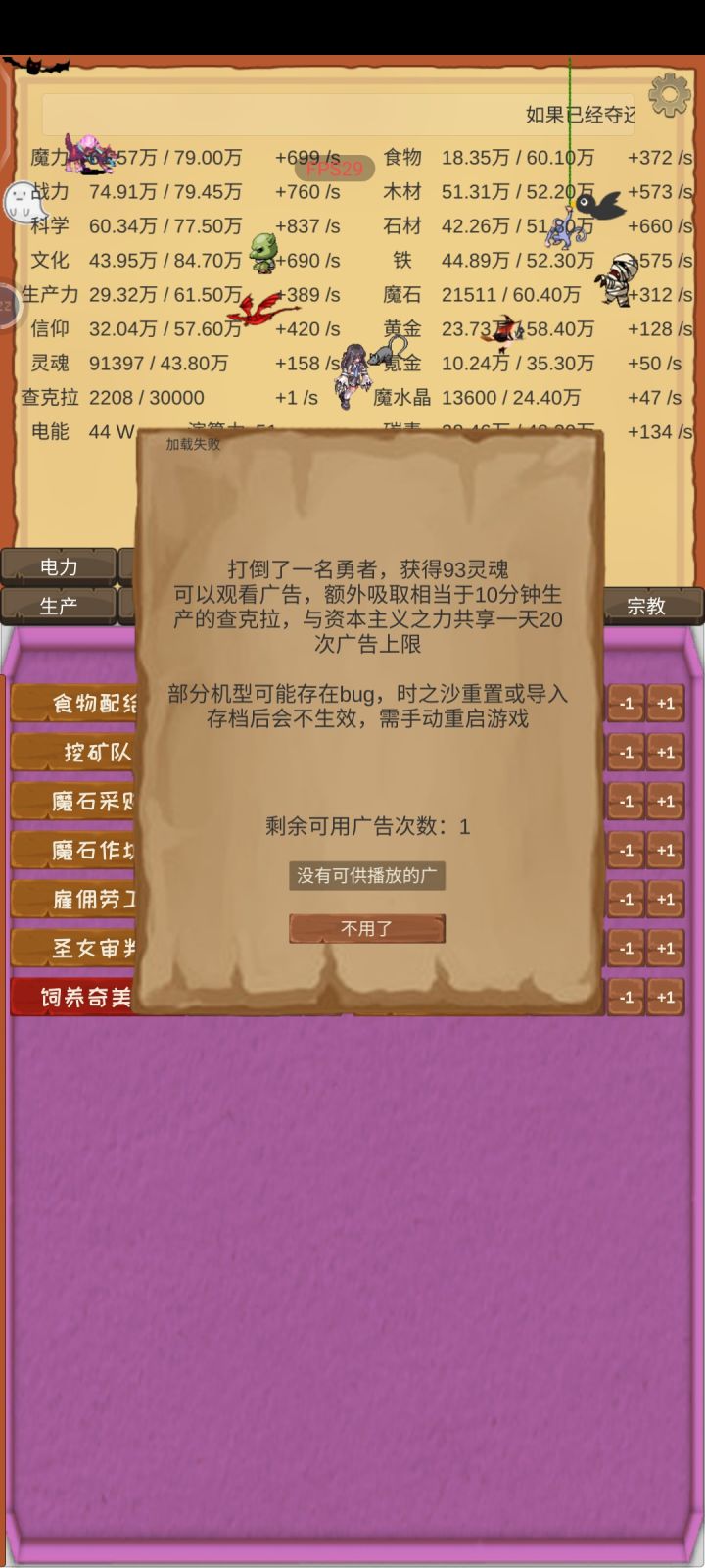 更新后是看广告20次+无广告30次,但一般来说只要不是一直在刷勇者30次就够用了,像我三十次都用不完,而且隔一会就要上线点一下资本,所以提个小建议。