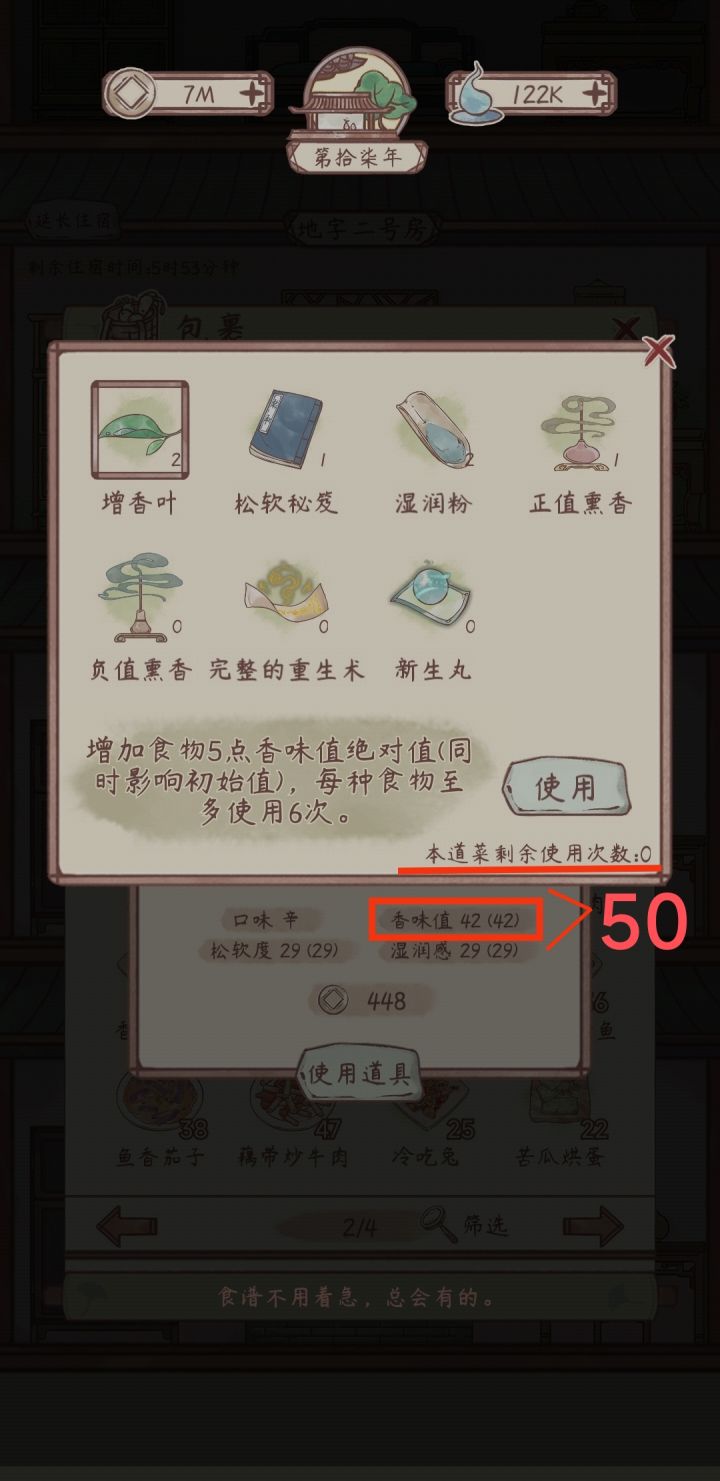 菜品香味值要>50,但增香叶使用次数用完了该怎么操作,求解