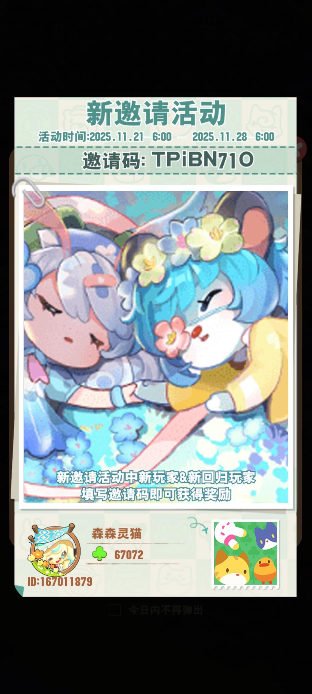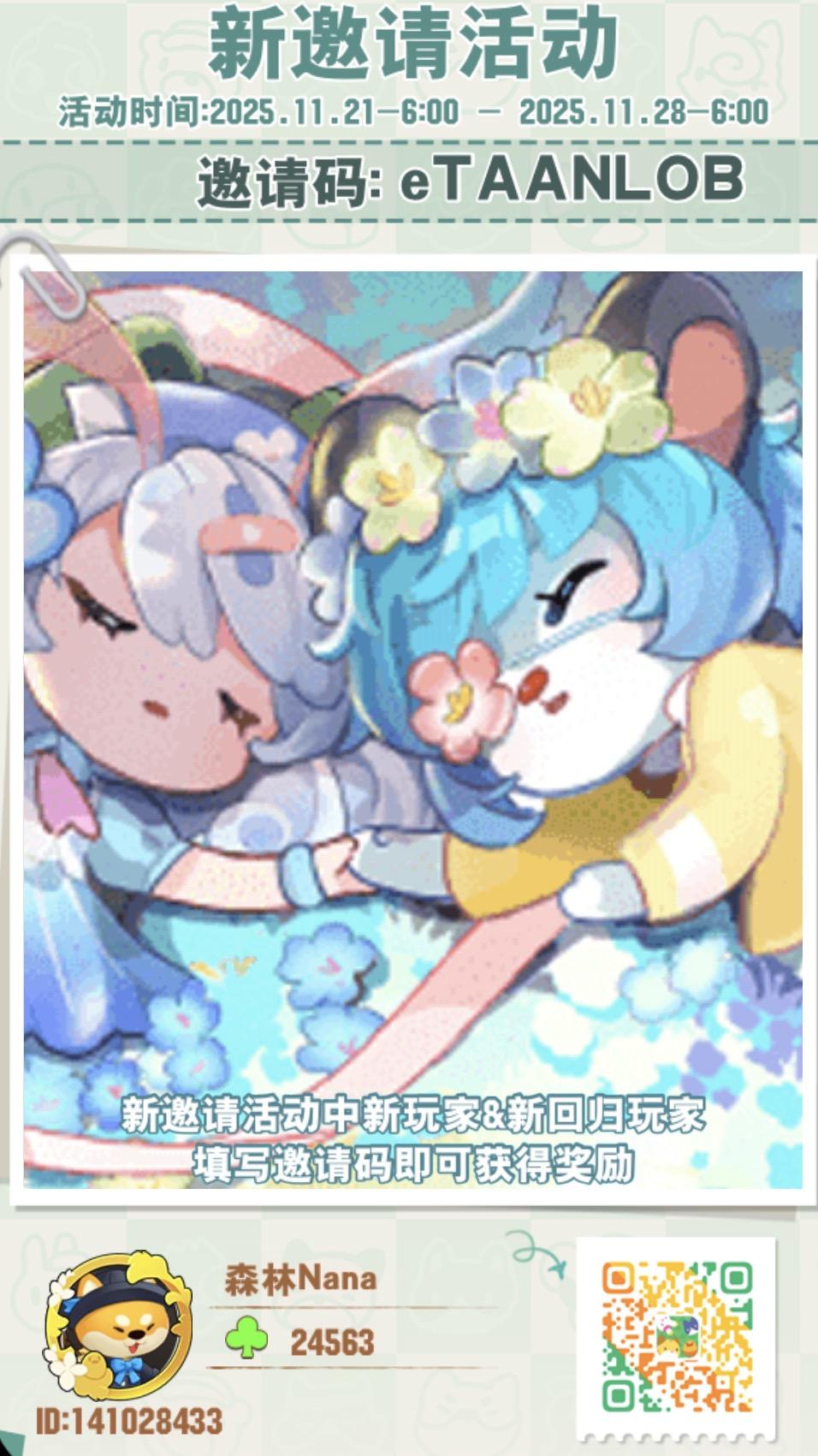 为了方便新老森灵王快速找到彼此,小日月特地开了这么一个邀请码互填集中贴,各位老森灵王可以把自己的邀请码发在这里,各位新森灵王也能在这里找到邀请码哦~老森灵王可以在【好友】栏这里,找到自己的邀请码然后把邀请码给到【注册后登陆不到7天】的新玩家,就可以一起努力领取礼包啦。而至于是【注册后登陆不到7天】的新玩家则可以在升级解锁【二级办事处】后,在【好友】的最后一栏找到填写邀请码的位置哦,然后一起努