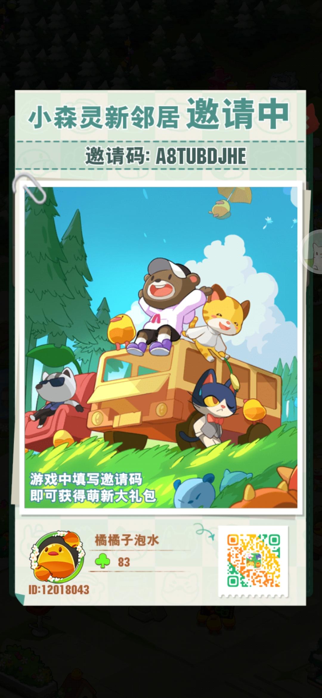 欢迎新人~ 兑换码: 小森灵666 小森灵888 点击游戏左上角头像可以输入兑换码~ 关注小森灵微信公众号: 小森灵驿站 每周都有福利礼包 邀请码:AtEgNBnXY右下角好友-第五栏-萌新好礼任务可以填写邀请码 领取萌新好礼 感谢
