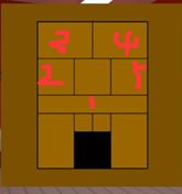 首先感谢素素同学提供的素材,这个密码的线索在洋馆·会客厅的右边沙发上,是斜着的四个图形。再结合机关处的提示图形,我们可以将沙发上的图形依次对应减去,得到四个抽象的数字。对应上机关的闸门,数字为几,向下按几次。
