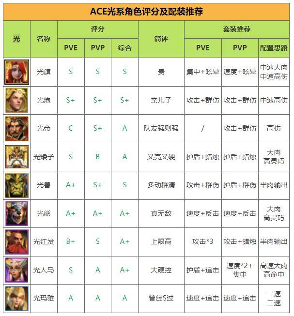 [搬运WIKI]光暗角色评分和装备推荐wiki地址:http://ace.gamekee.com/,作者@大棒子君