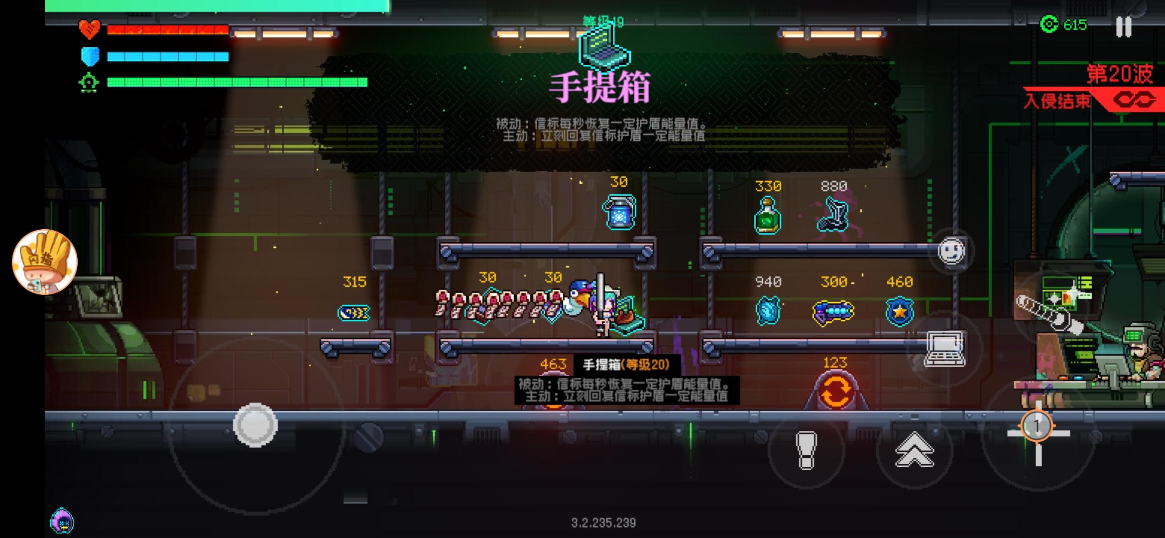 收集纪念品:方舟反应炉+口红💄+能量转换器 方舟反应炉:爱心❤️转化成能量护盾 口红💄:购买物品后,自动填充商店物品 能量转换器:将人物获得的护盾自动转化为金币 注意⚠️:由于道具过多可能会卡死,谨慎使用! 商店就算有口红💄自动填充物品,也会买空