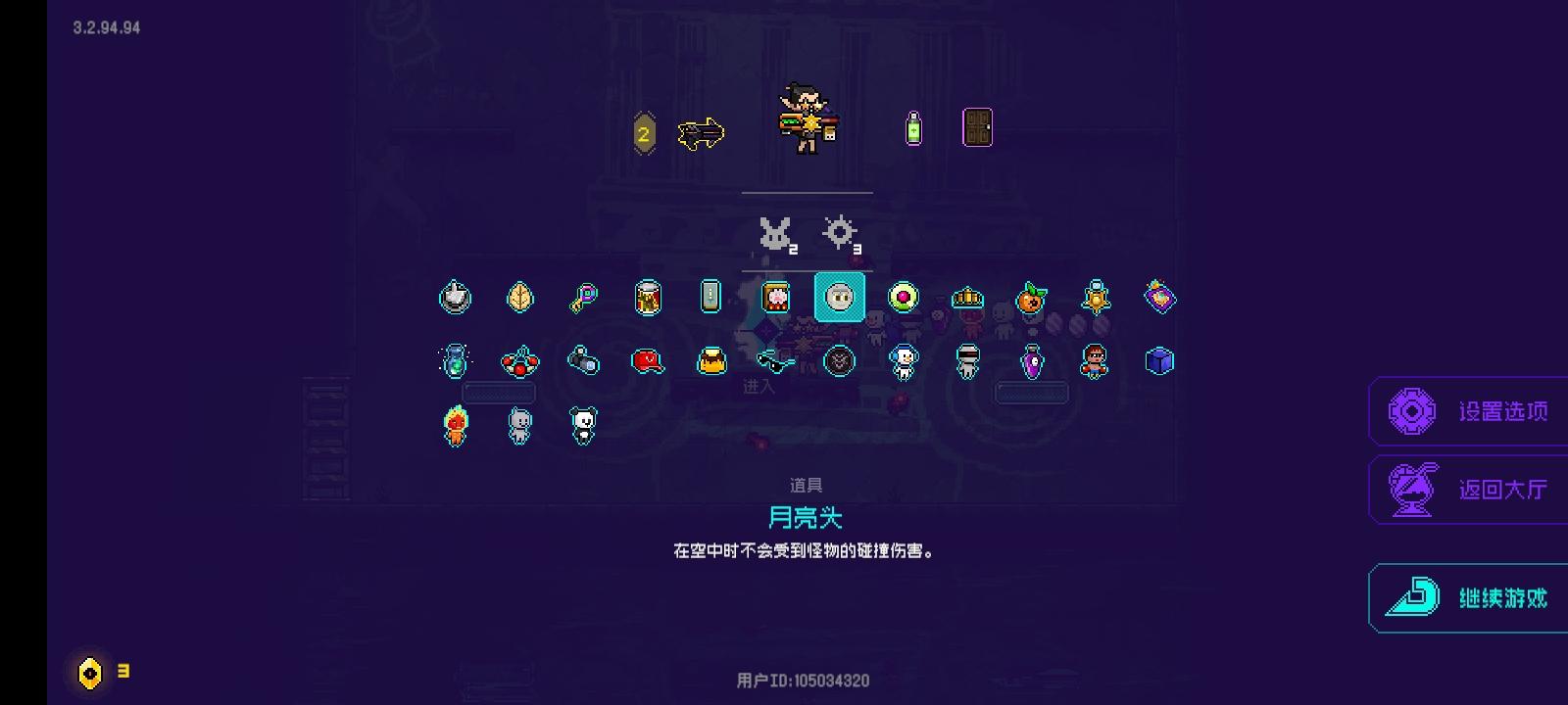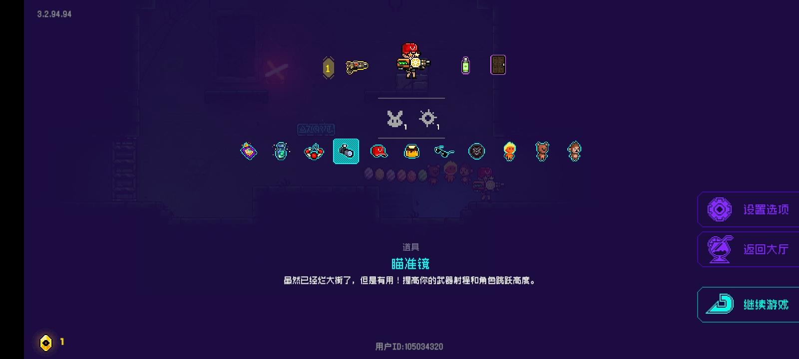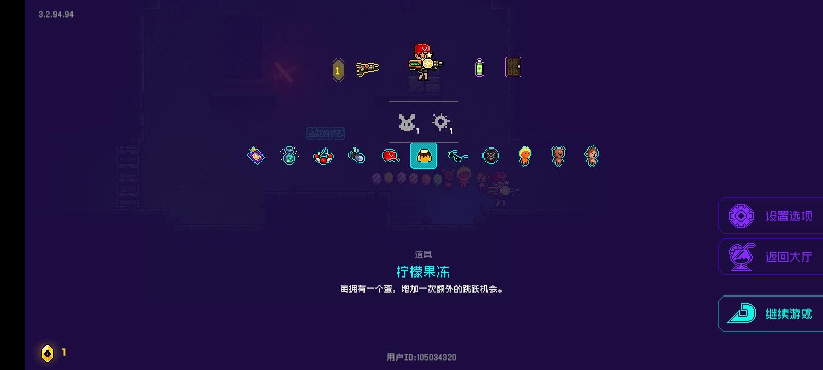 可以看到,这就是bug卡成功的状态。众所周知,从六关往后关卡完全重复,实在无聊了,打到十就停了……反正都是秒。想卡这个bug必须有6个条件,第一个是能量转换器,第二个是彩票,第三个是双13,第四个是口红,第五个是招财猫,第六个是方舟反应。下面先说一下原理:凑齐上面6个条件之后就可以完全无敌了(不要爆米花,磨刀石没啥用)。商店里护盾和红心会半价,购买后拾取的护盾会直接变成更多的金币,简称免费增