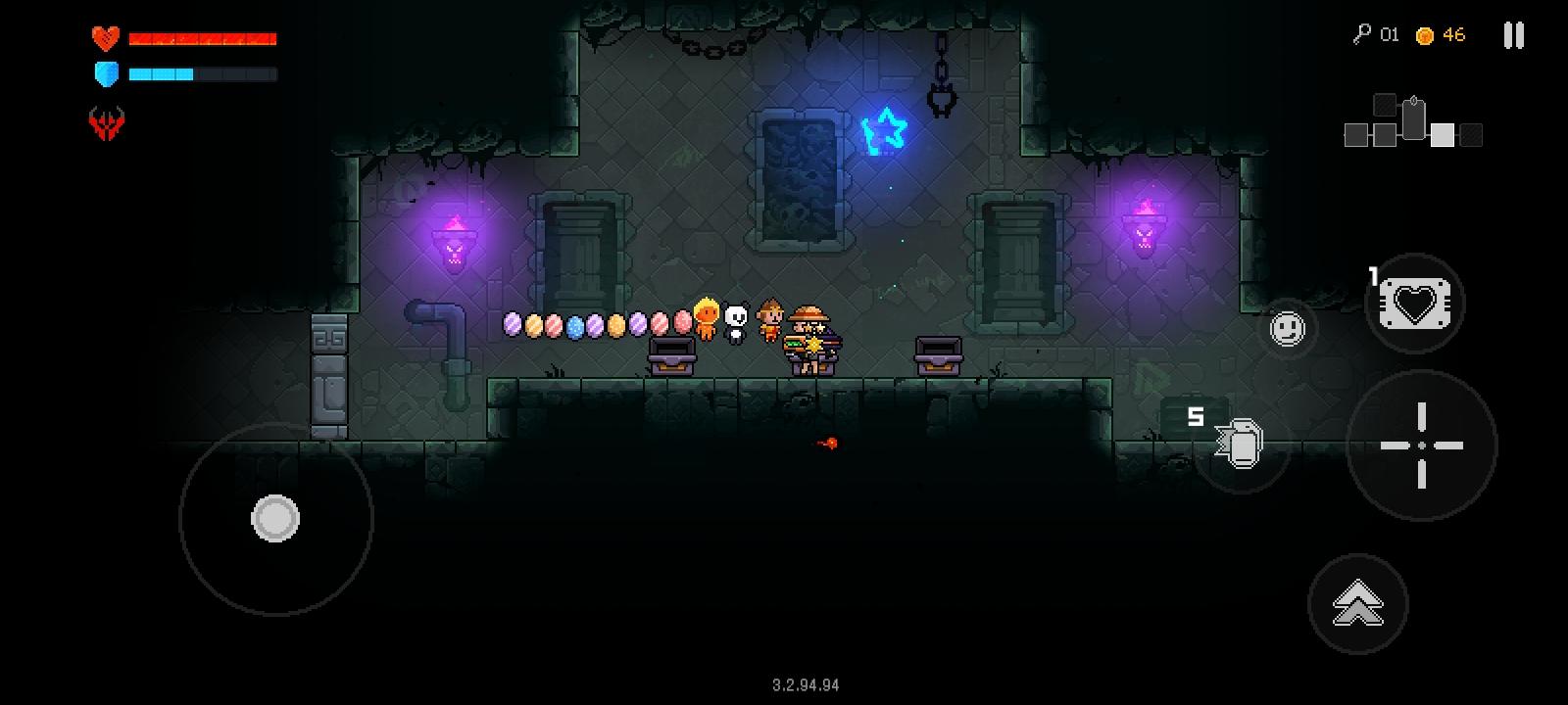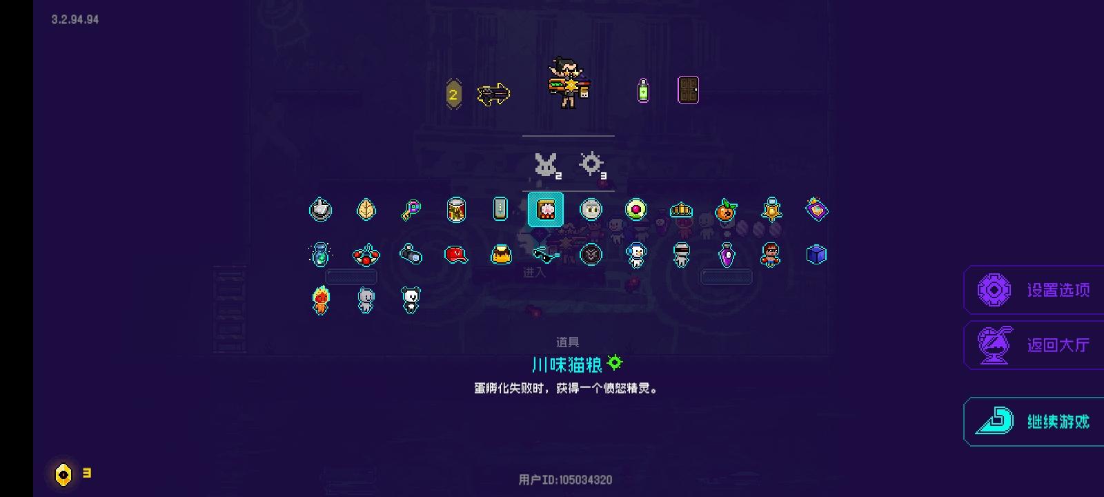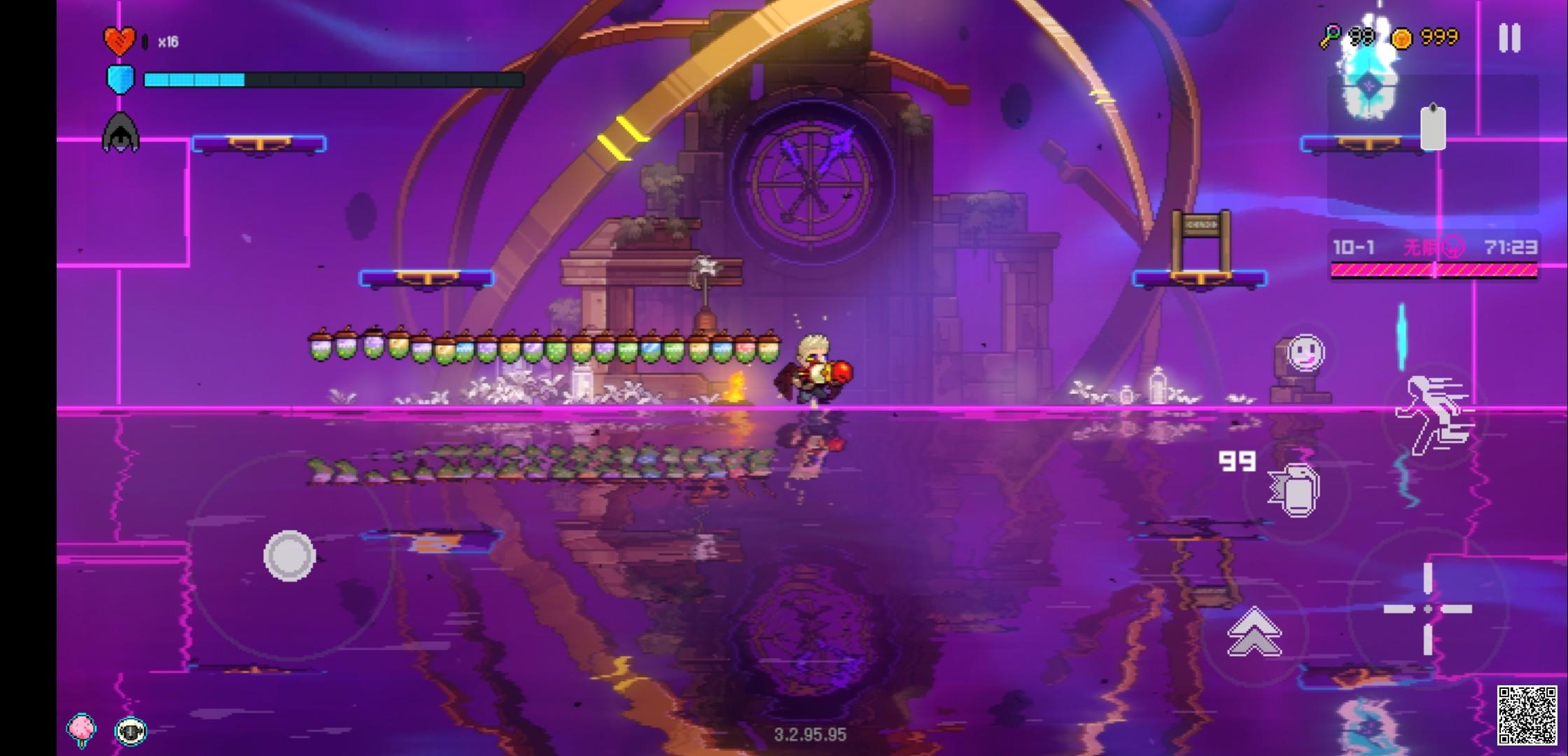 可以看到,这就是bug卡成功的状态。众所周知,从六关往后关卡完全重复,实在无聊了,打到十就停了……反正都是秒。想卡这个bug必须有6个条件,第一个是能量转换器,第二个是彩票,第三个是双13,第四个是口红,第五个是招财猫,第六个是方舟反应。下面先说一下原理:凑齐上面6个条件之后就可以完全无敌了(不要爆米花,磨刀石没啥用)。商店里护盾和红心会半价,购买后拾取的护盾会直接变成更多的金币,简称免费增