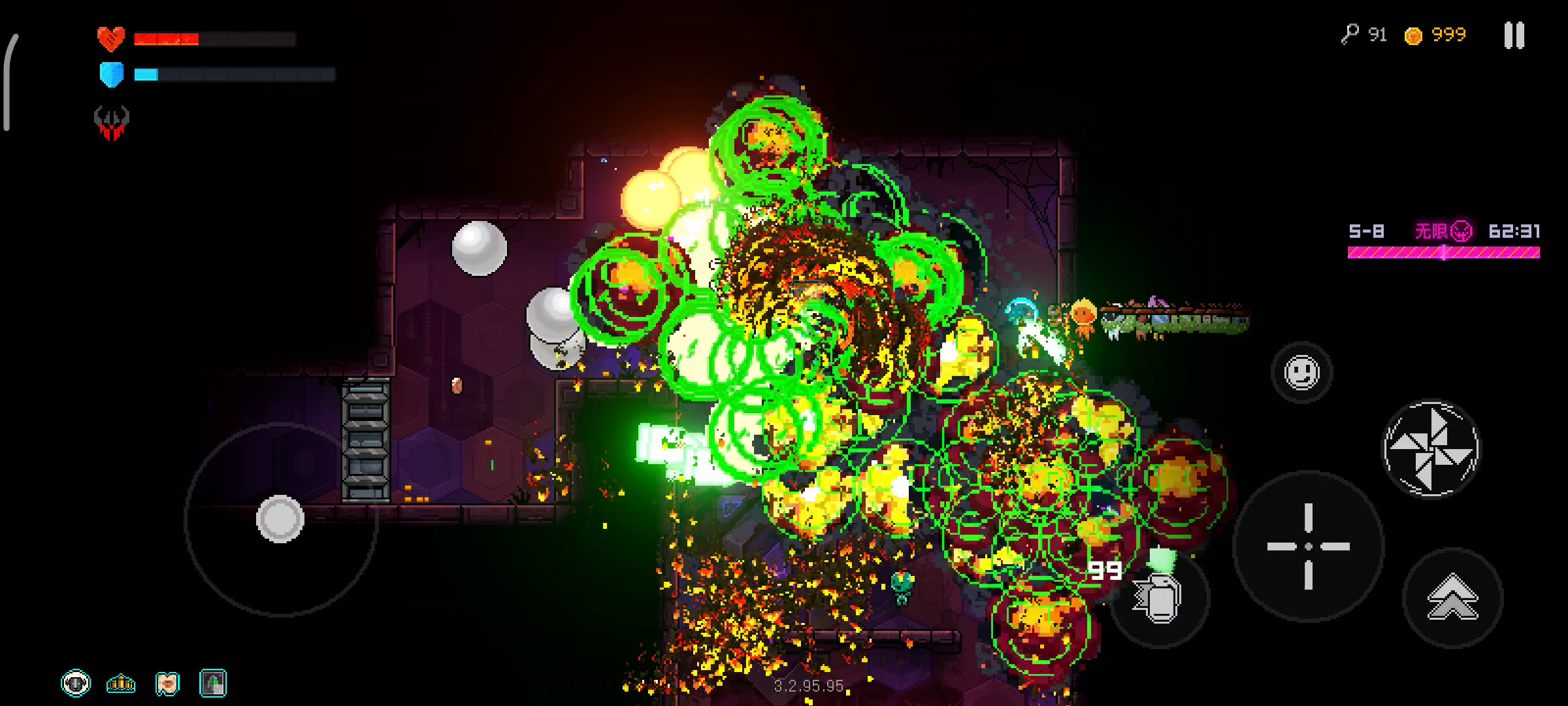 钢铁意志全套铁皮青蛙小花炮弹性地雷还有舞会以及子弹上限拉满后,手机已经撑不住了,加上火瓶子以后雪上加霜,后期满屏伤害但是全部木大,刮不动了,而且手机卡死,但是因为姜饼人和薛定谔以及一些杀敌回血的加上消弹的又欲死不能,挺尴尬的就 我觉得可能是需要优化爆炸的性能消耗的,这样子欲死不能太难受了😂