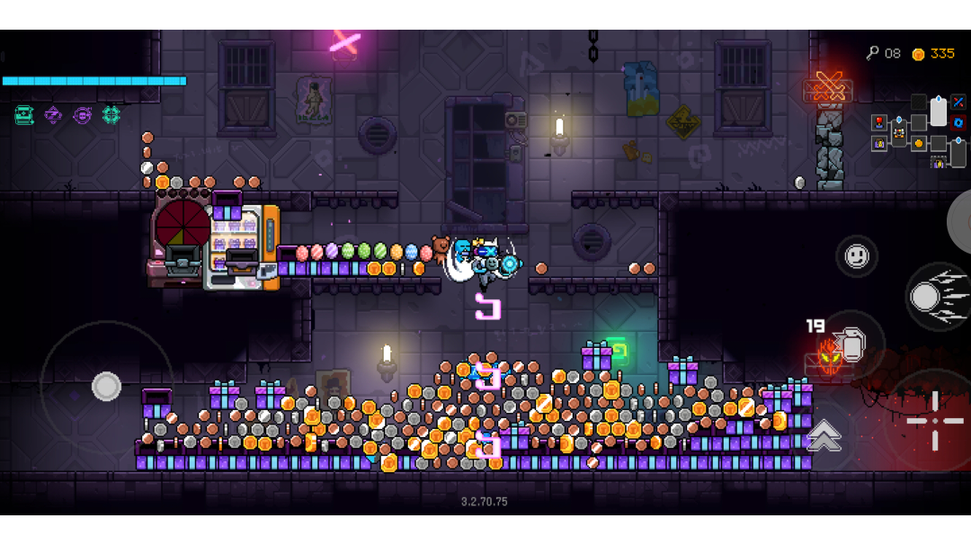 只要一个转不坏的金币转盘不需要任何条件直接商店当破解版,到后面所有特殊房间都没有任何道具,还有几个道具看了下还没解锁,不知道是不是还没出还是怎样。 还有一件事就是希望可以屏蔽特效,太炸了!差点卡死,卡死又得重开,直接原地去世😇