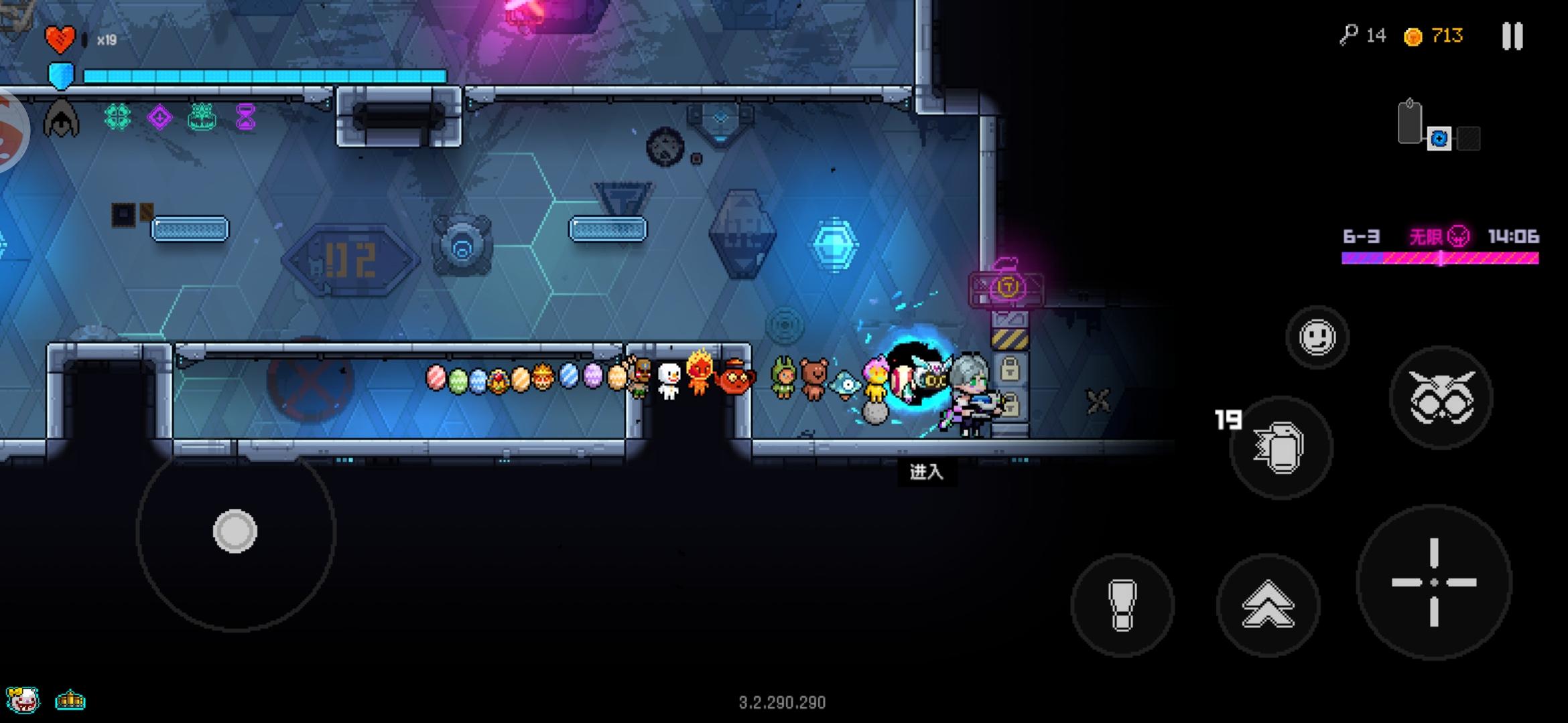 刚进去的时候 血条和护盾条 都变成了爱心和护盾。黑屏闪了两下 然后爱心和护盾都变回了血条和护盾条。 接着 一下子又传到顶上空气墙外面 一瞬间到最底下 (简称上天入地 飞升了) 后面就在底下疯狂掉血 (但血条不掉)(护盾瞬间没了)#霓虹深渊无限