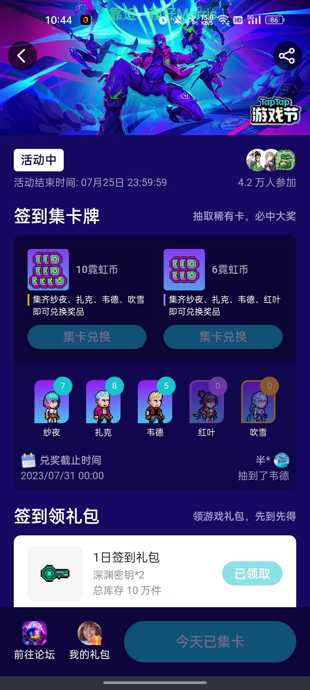 “预计今天”23:59也算今天,有限剑制和新角色专武加成bug的补偿还没发,如果是两个加起来10霓虹币,你还不如给我500餐劵镀棒球🤓