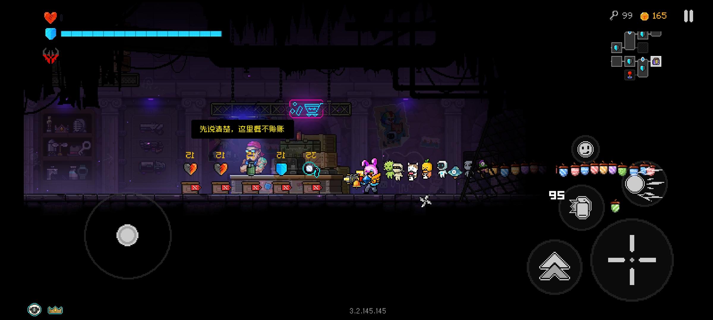 1.能不能改一下?就是打关的时候在血条旁边显示具体的血量和护盾值,还有钥匙和金币,实时显示不要到99和999就不动了,可以搞个隐藏成就什么的,这样会更有成就感2.还有就是愤怒精灵打完人之后回来的排序有问题,看着非常的难受,就比如说五个愤怒精灵排序正常来说,就是个五边形的样子,结果一边三个一边两个看的巨难受3.还有闯关过快,会有愤怒精灵遗失,过了好几关之后,才会突然出现还有最重要的:多出出活动,像什么情人节啊,什么的都搞点活动,什么妇女节,劳动节,国庆节,清明节这些,都可以整啊,大大的增加可玩性了