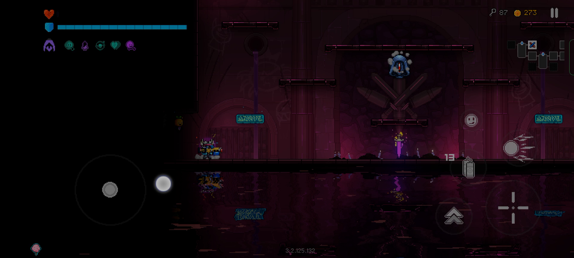 再度出现,还是那个怪,开始是出现在战斗房间右下的地板,之后就出现怪物无敌,旋转扔炸弹,然后去别的房间也处于战斗状态(刀剑领域间隔20s回复),传送石无法使用,小地图点不开(战斗状态缘故),只有在我去了挑战房间(红色双剑标志)打完之后才恢复,再进出现bug的房间,依旧怪无敌,离开也是战斗状态。