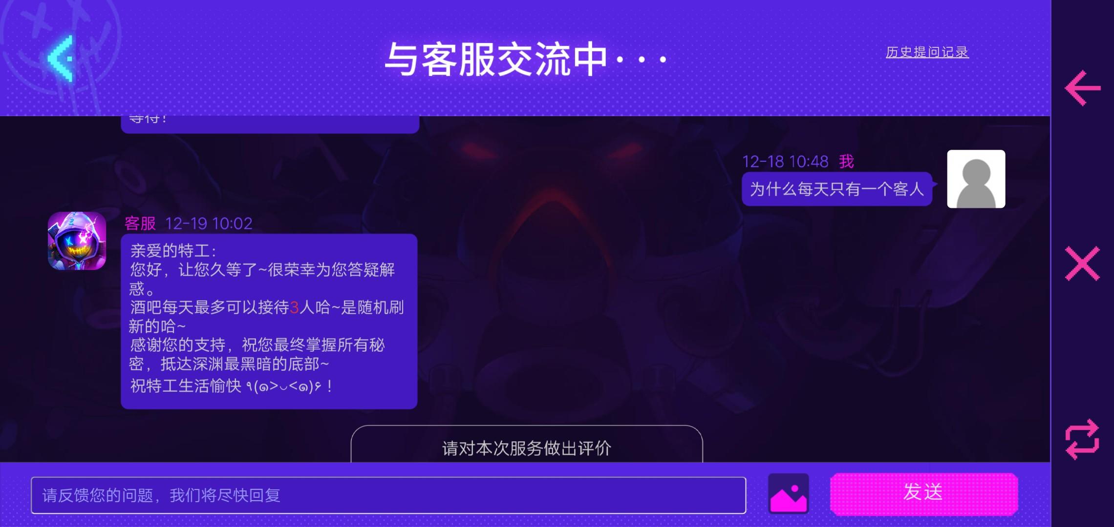 今天的调酒有bug,尼尔要酸的,给他调酸的,他说不对,然后给他调彩虹,他又说偶尔换换口味也不错?官方的程序代码写反了嘛??
