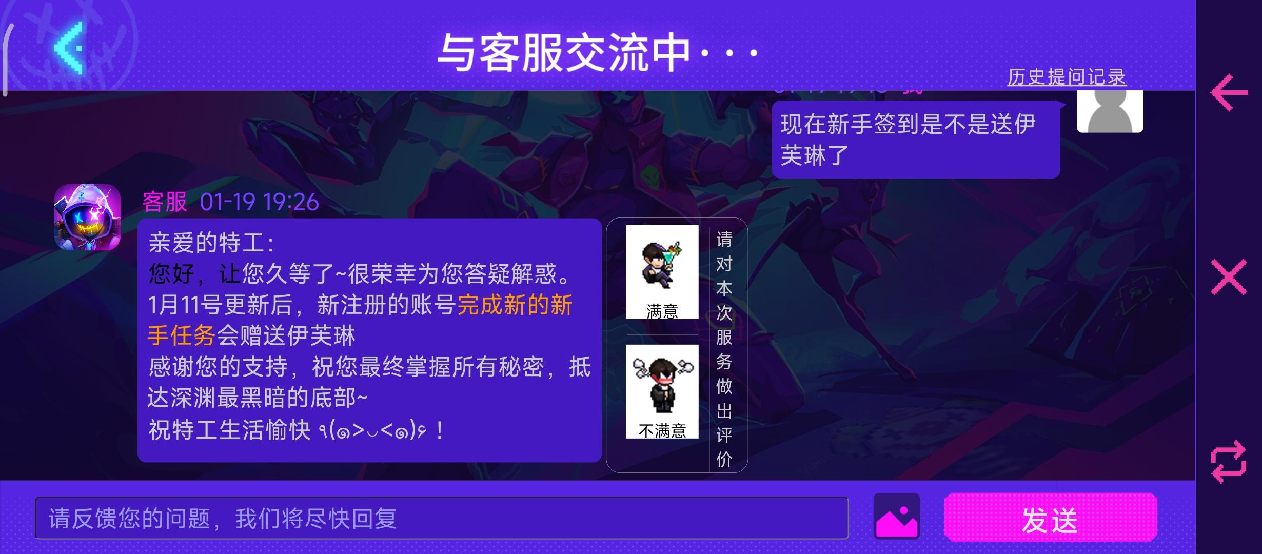 现在新手签到都送伊芙琳,俺也就是入坑两个多月的萌新,难到就不准备补发一下?毕竟也值150个票子[TapFamily_给你一拳][TapFamily_给你一拳][TapFamily_给你一拳][TapFamily_给你一拳][TapFamily_给你一拳]