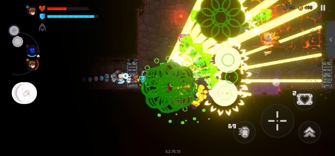 霜火发射炸弹,重要道具有(记不清名字所以说道具效果):战斗时炸弹爆炸会掉落物品;爆炸后再炸一次;爆炸后发射烟花弹幕;炸弹爆炸范围内消除弹幕;炸弹爆炸每个蛋也会爆炸一次;飞行;空中免疫碰撞伤害;免疫爆炸伤害;愤怒精灵的四件套;爆炸的四件套。 跟我俩朋友一起玩,这一系列凑齐之后每个关卡都是一地掉落物,我的金币炸弹钥匙视频里也能看出来,都是达到上限了再加上爆炸范围消除弹幕和空中不受碰撞伤害,基本上等于每关刷物品,这也是我端游手游玩的最爽的一局~ :D