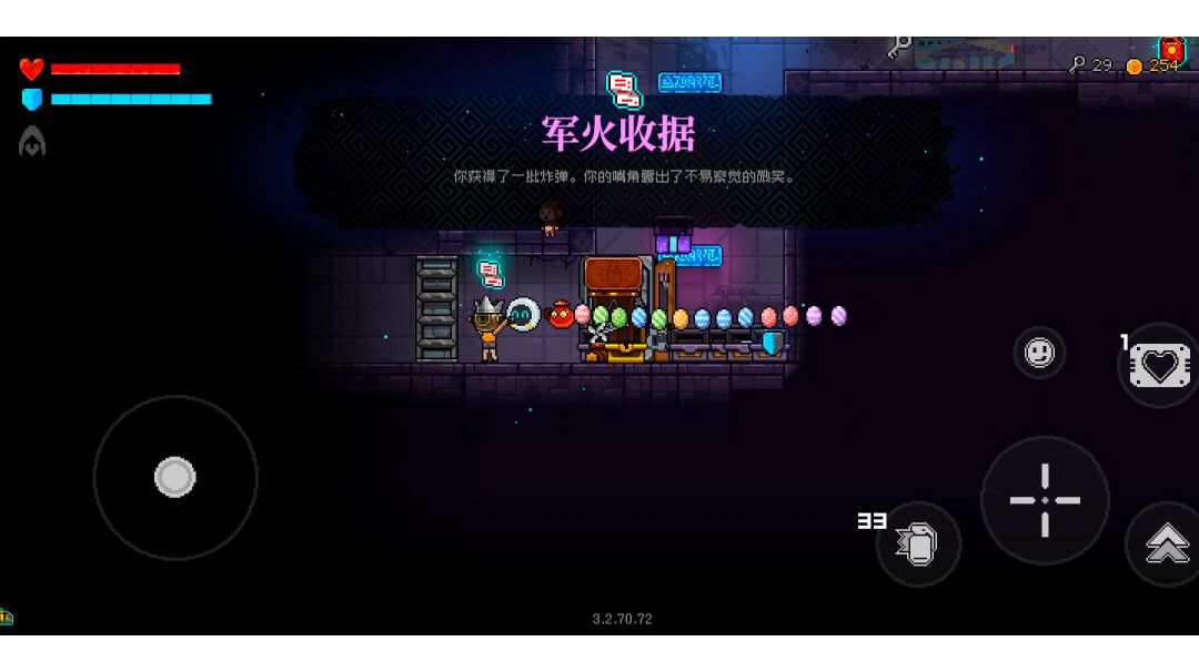 炸弹套很好用,子弹自带爆炸伤害很可观 宠物和蛋堆满估计有六七十个,蛋可以反弹子弹(橡实),宠物数量增加输出(各种糖) 角色面板靠猫咪的霉心使劲堆盾后期打boss根本掉不完