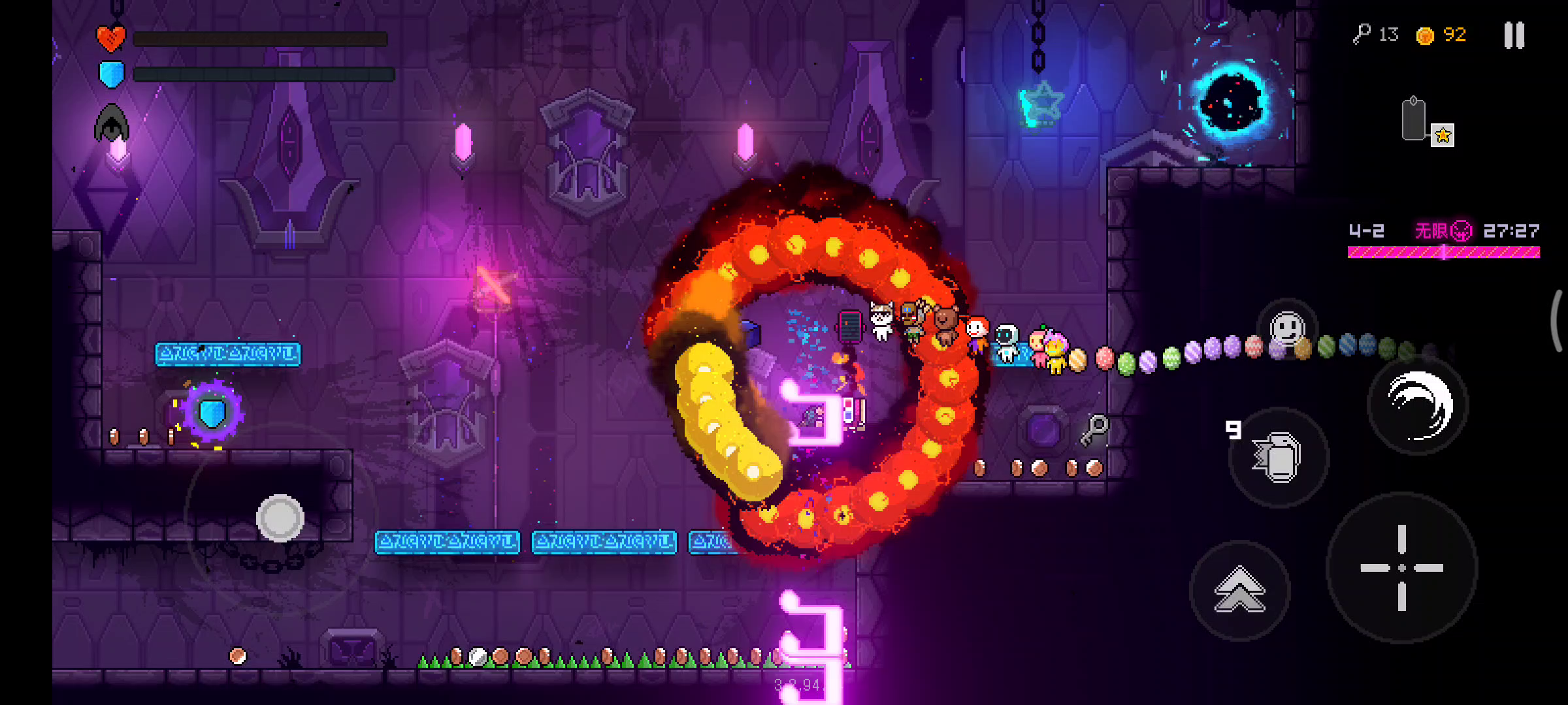 不要爆米花,不要火焰,就非常流畅啊! 开局不要脸套装:嗝儿,加上跳跃埋地雷的(开局不要带飞行),还有一个受伤掉道具的,边打边跳,轻轻的刷一阵道具,后面就非常流畅了。 只捡加伤害、攻速、射程的就可以了。