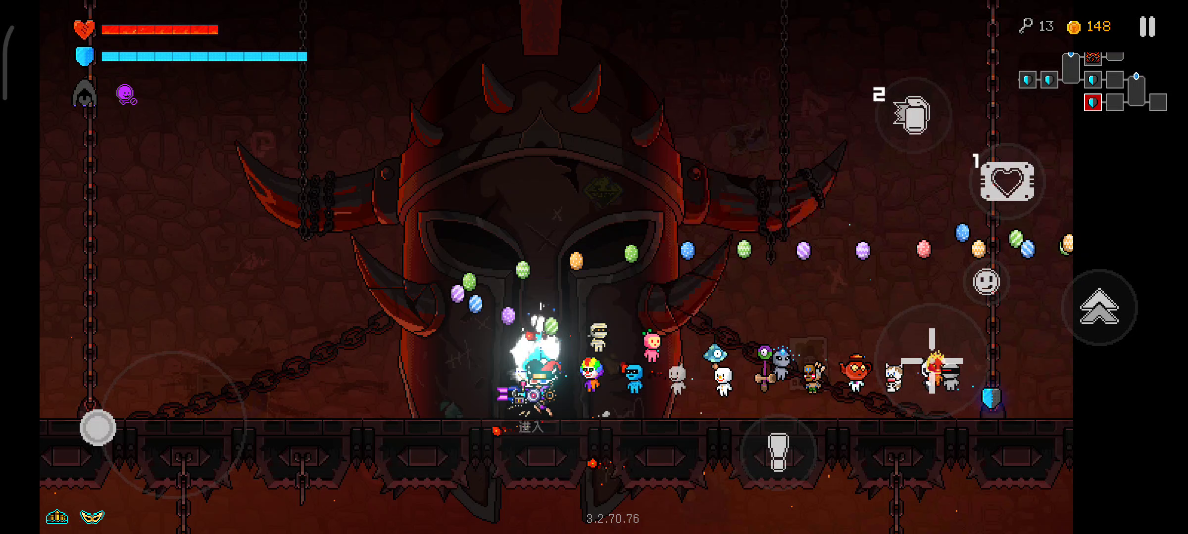 这个boss好强呀,打他还不让你飞。后面一堆蛋,手机卡死,太难了