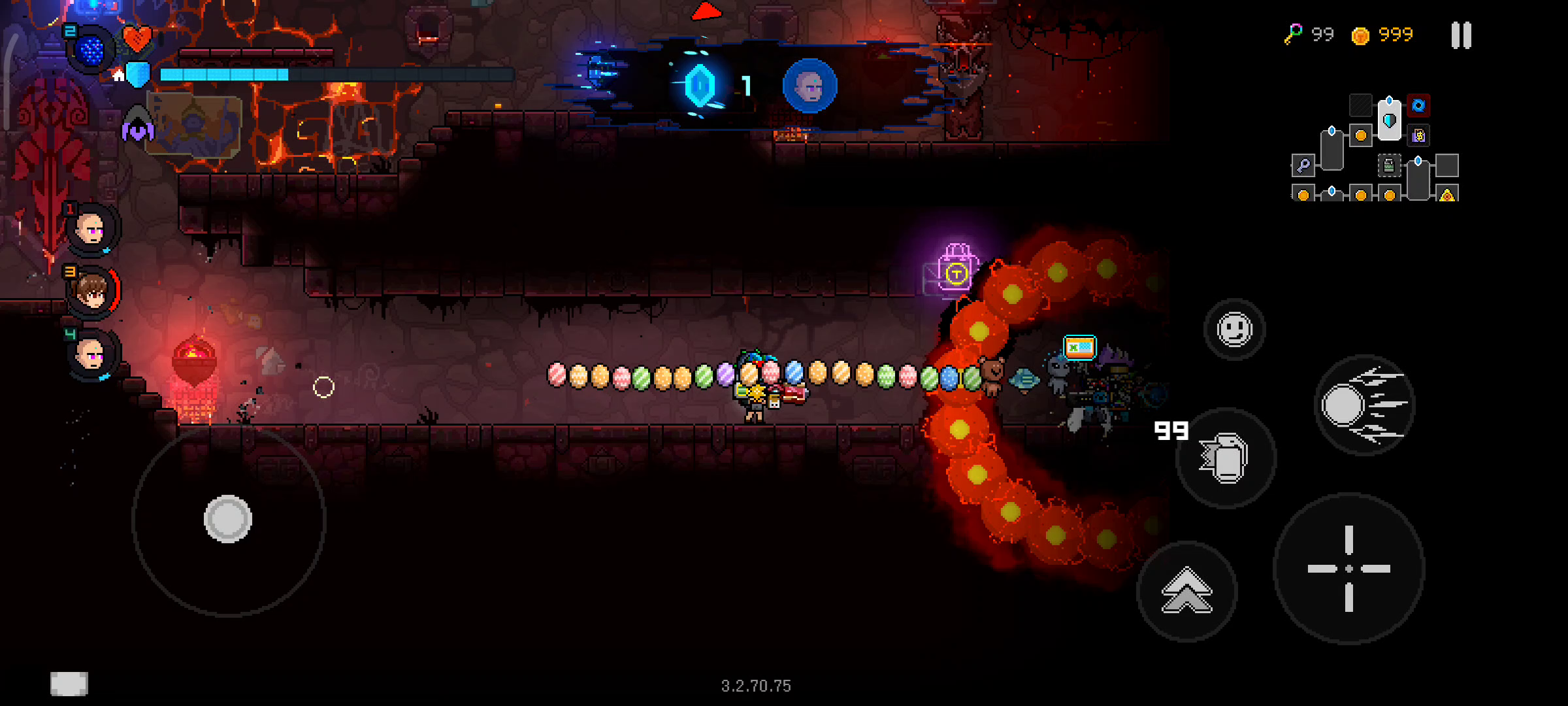 本人手法很菜,不会刷特性,刷道具,随缘筹齐跳跃等道具,突然心血来潮,把自动攻击关闭,利用小姜人无限复活。然后利用羽毛踩蛋发射追踪子弹,打死boss,这个应该是全网第一个这个流派玩法的吧,我命名为踩蛋流。