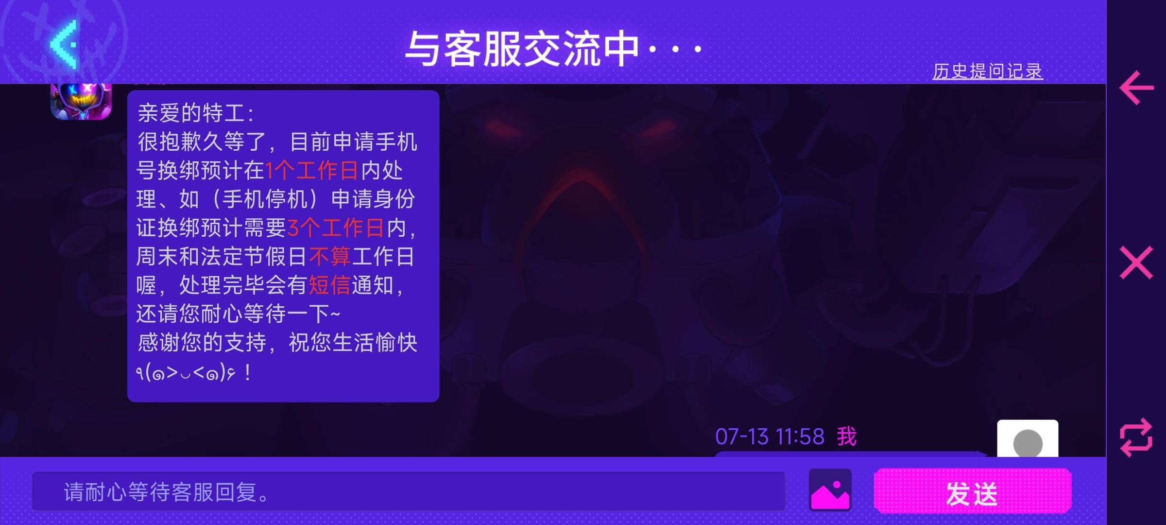 家人们,我之前手机号换了,然后我行思在下回来,我登录的时候就发现这不是我之前的那个号,然后申请了手机号停机申请身份证换绑,客服告诉我三天之内,但是这已经第三天了啊,有谁知道咋解决吗