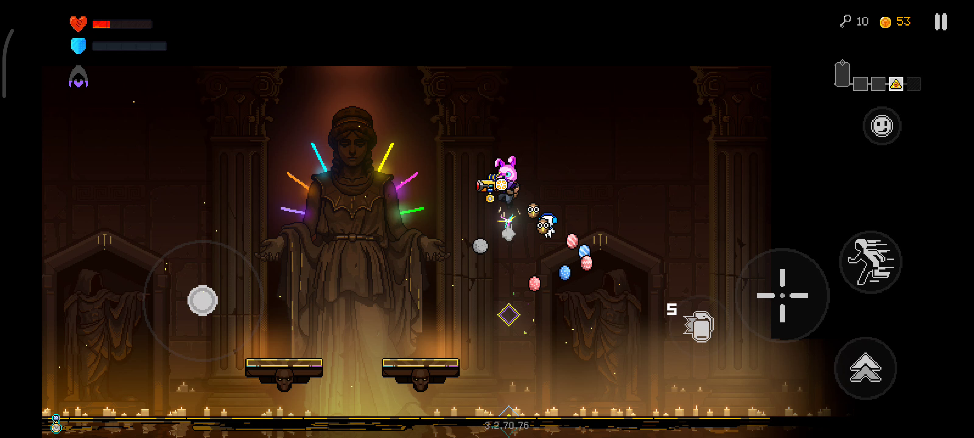 刚玩这游戏,有两个技能特有趣,捡到那个跳一次在跳跃的过程中增加一颗蛋(落地蛋就消失了)的技能,再加上身上每多一颗蛋就增加一次跳跃机会的技能,这俩玩意也太好玩了,可劲跳越(单纯好玩,没啥大用)