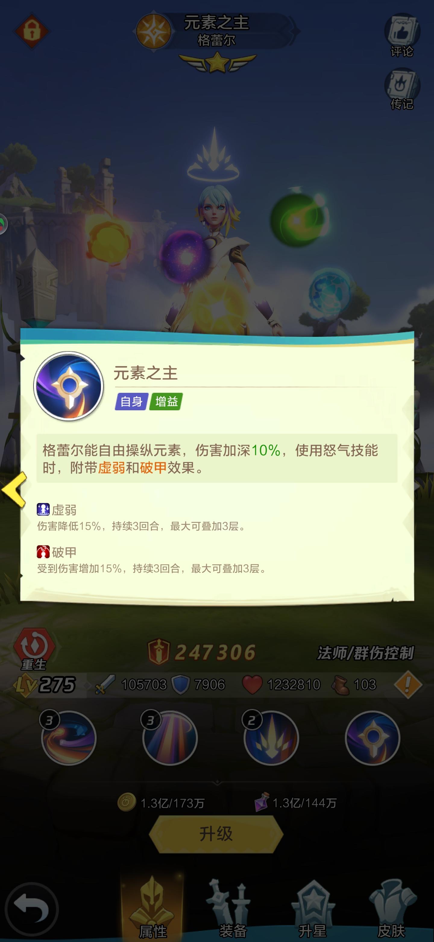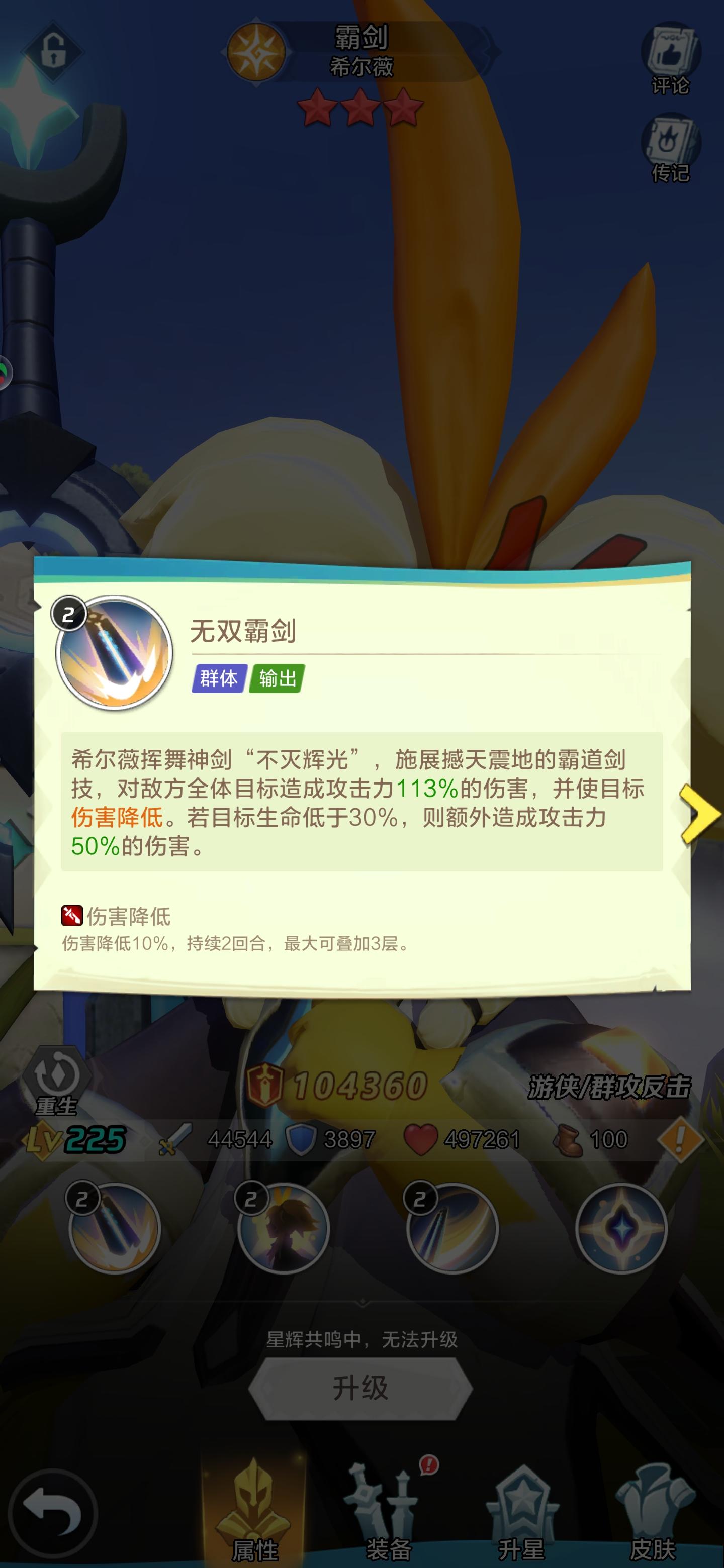 元素大招附带眩晕,虚弱,破甲效果,狂风之龙大招附带破甲,伤害降低,流血效果,霸剑附带伤害降低效果,被动能很好的抗住2-3回合,水系列小鲨鱼附带伤害降低,一个回合对面几乎伤害降低状态拉满,这个效果有多好,更何况平砍无差别攻击,由于图只能上这么多,所以可以自己去游戏里面看看他们的各种技能搭配,普攻无差别,技能有针对单体的有针对后排的有针对全体的,可以说相当全面。