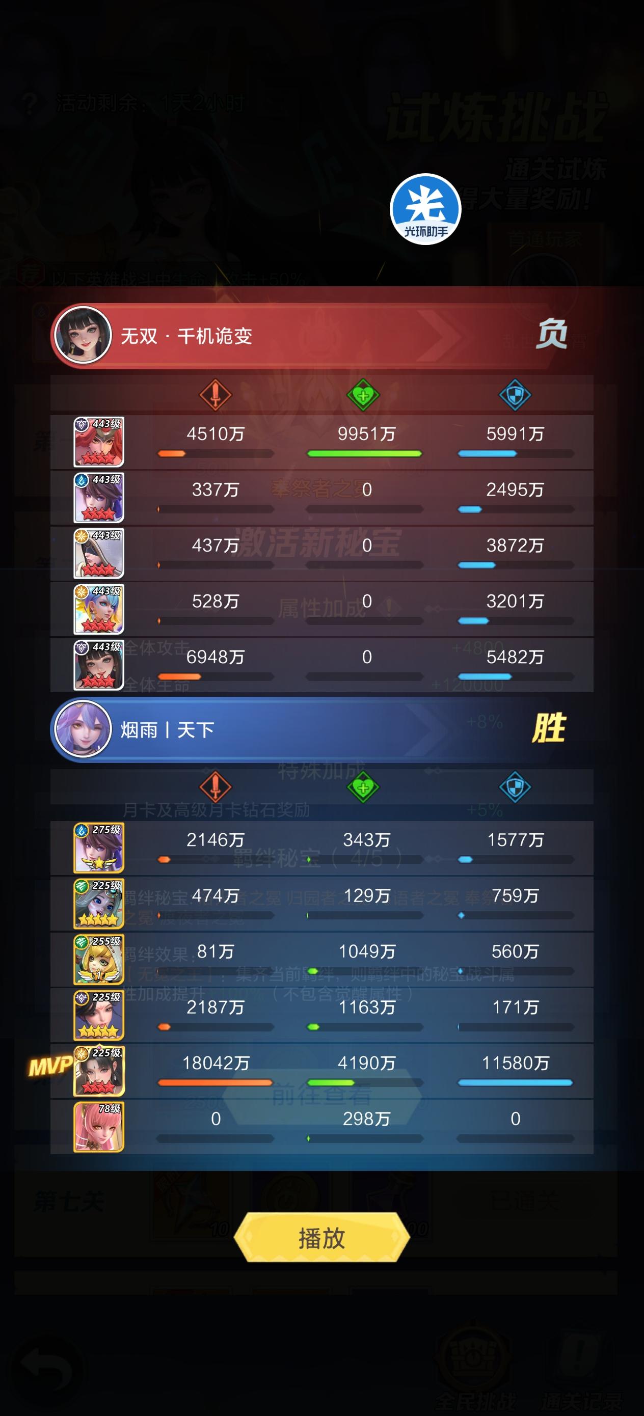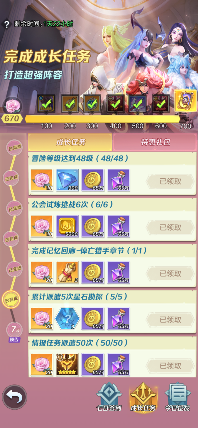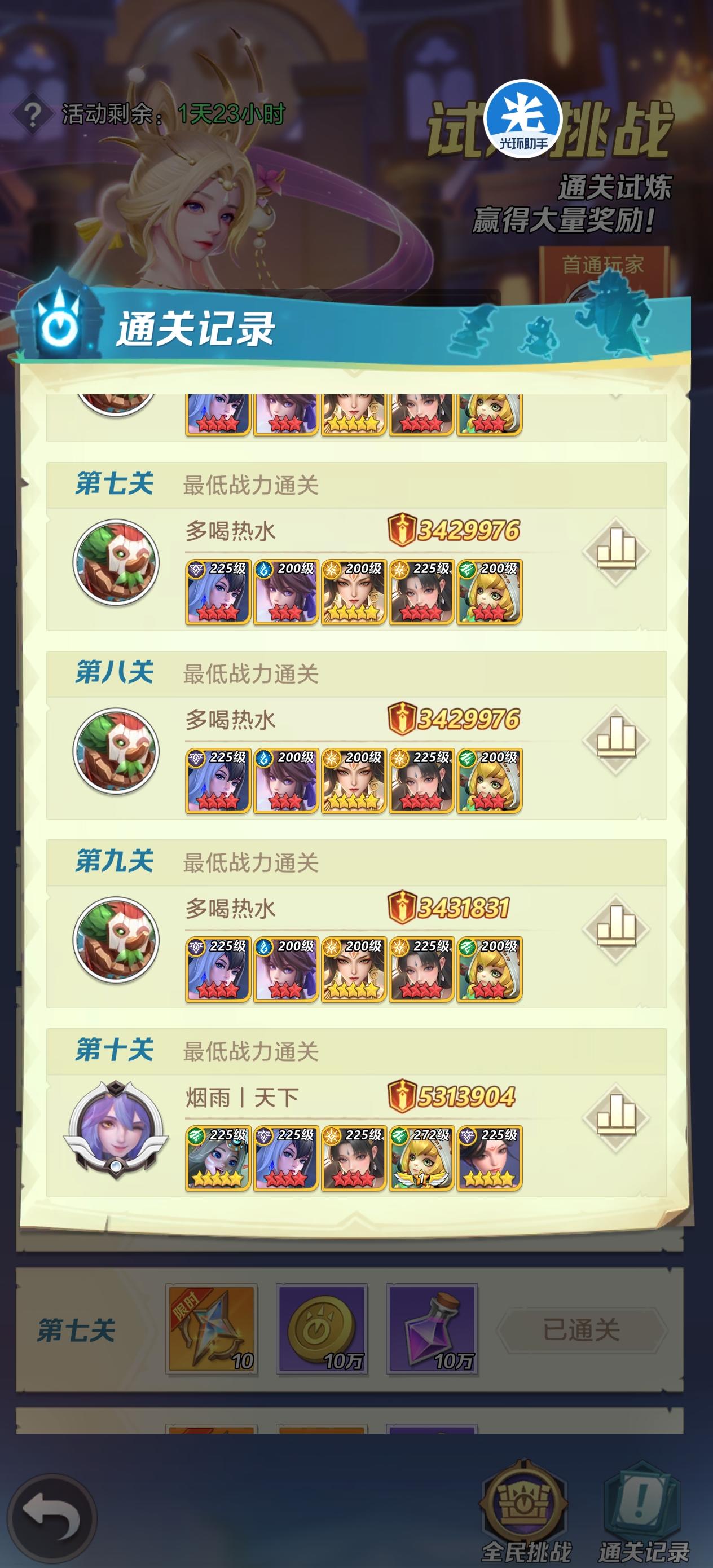 领第二天福利给的薇娅,去升星,如果误升了其他同系的英雄,可以回退给薇娅升星。然后去打试炼,就会获得时光,同理,接着把时光升星。(注意:普通光暗系只能升到九星)第二天会出个心愿招募活动,这是给氪佬氪金服务的第二天会解锁远古圣域,这是钻石来源途径之一。这个玩法分为两队,建议一个队配有一个高输出带四个英雄,另一个队配有一个强势奶妈带四个输出。最好打满三星,如果打不满就反复打,反复打,反复打,实
