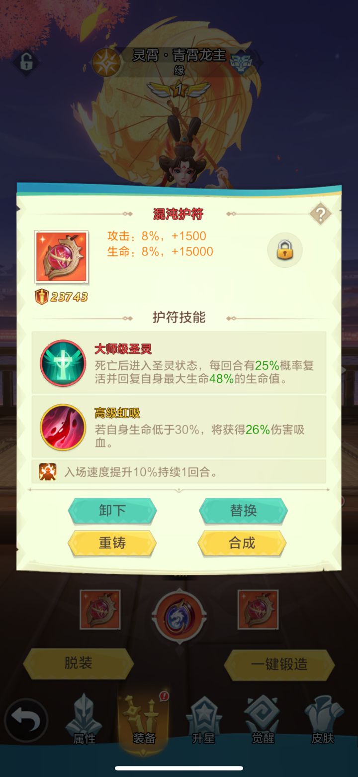 氪了近1100目前没有一个整体的思路各位大佬帮我指点一下我暂时想到的问题第一: 我目前这个阵容是搞的主C龙主准备想让女帝c,目前就是有点纠结圣堂是换女帝升星还是换玉环,明天是第五天出神兵但是吧拿了神兵女帝也用不了才五星护符也只能放一个。第二: 护符的技能我主要该换啥当然速度得有,比如女帝的换啥龙主的换啥捂脸哭第三: 往后的一个整体思路我改咋整,自己打算氪1500左右也看