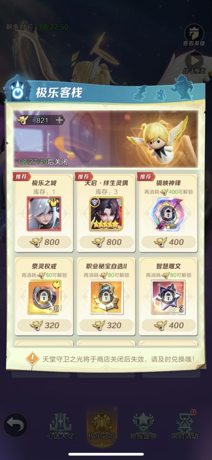 今天应该是第二十五天,我这情况如下图所示比较难受,准备整个神官,再弄个九星的新暗法,组个四天启加仙姬的队伍,暂时过度。等下个系列来的时候钻石只抽心愿,抽完下个系列的全十星再搞装备,不知道这样可不可以。这样的前提是,我现在的碎片要合成完整的(目前是战灵20碎片,幻兽80碎片,天火神石50碎片,天耀魔典20碎片)如下图这个我是想,幻兽整三个白板(包括风语兽),战灵给主C整个玛格丽特,天火神石给