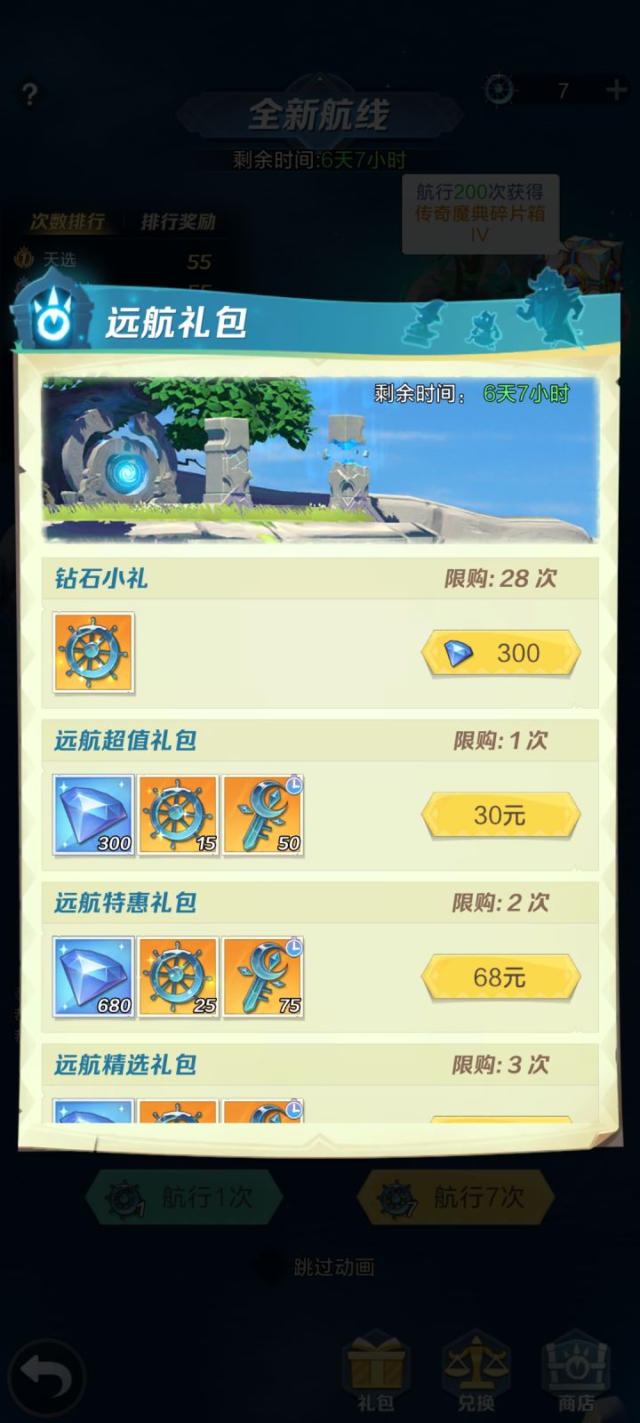 刚出村出了远航活动,看了攻略要攒船舵,攒多少个好点,要花钻买船舵吗,大概航一次可以获得多少勇者之证和钥匙啊#