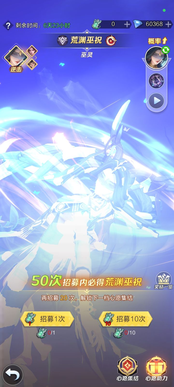 我这从活动进的心愿招募要6000钻啊,我还以为第8天会出现,结果还是这个,只是换了新英雄。