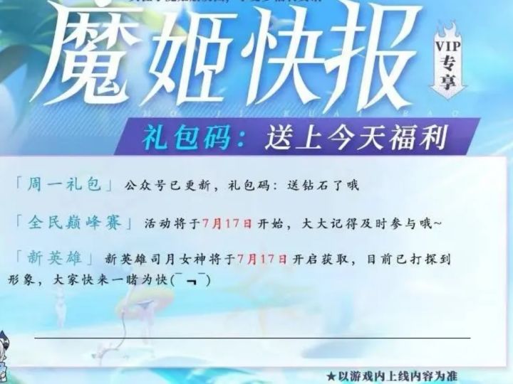 普通码:这里有钻石vip(v10及以上可用):礼包今天已上周四新英雄神兵周六未知