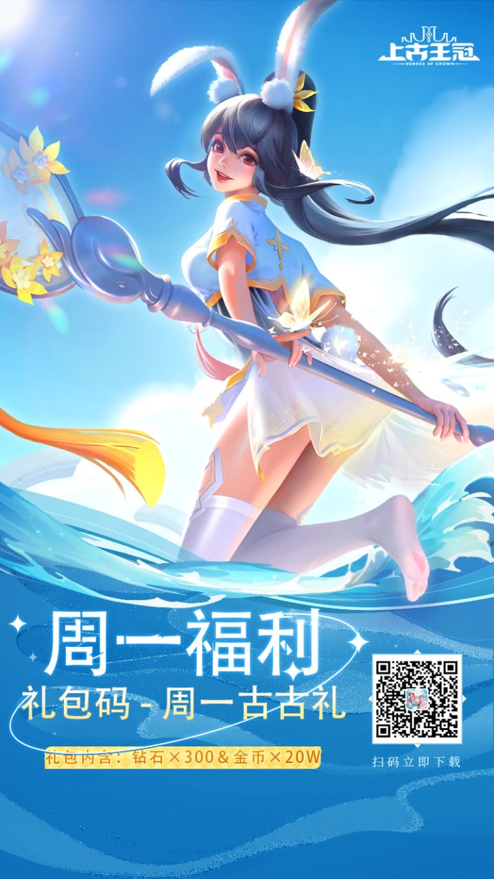 【周一福利】来啦!♔礼包码:周一古古礼♔礼包内容:钻石×300,金币×20W♔有效期至:下周一4月28日【近期礼包合集】🎁礼包码【素魄剑心】,有效期至4月23日🎁礼包码【五藏山经】,有效期至4月25日