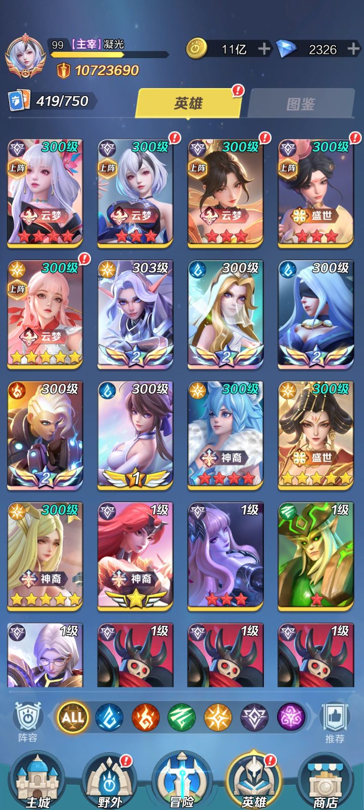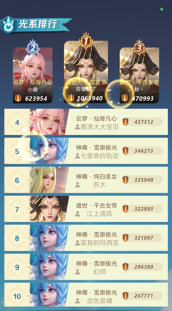 等送的白蛇到手刚好5云梦后面女娲白漂也能10星至此5云梦也算毕业了,看后面每周各种2万8钻石的返厂战灵,魔典,宠物,以及花原石捞特惠商店材料活动,往后就是养老摆烂了(反正5个云梦我是养不起如果女娲心愿返厂几次还能12,木兰进了圣殿也能12后续都会进但是感觉养不起。还不如就养个女娲孟婆摆烂得了。)总结花时间啥都有。攒钻石拿硬件,有硬件谁都能带。英雄都是随缘反正淘汰快。快餐游戏能耍一年是一年