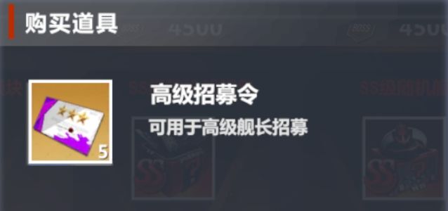 游戏中获取舰长的方式有中级招募、高级招募、王牌招募和传奇舰长,其中高级招募和传奇舰长是大部分玩家获取舰长的主要方式,今天讲一下如何获取高级招募令以及使用~01高级招募令介绍高级招募令:主要可以用于在高级招募和传奇舰长活动中获得舰长。高级招募:单抽消耗5张高级招募令,十抽消耗50张高级招募令。传奇舰长:单抽消耗6张高级招募令,十抽消耗60张高级招募令。当高级招募令不足时,可以消耗钻石补充。
