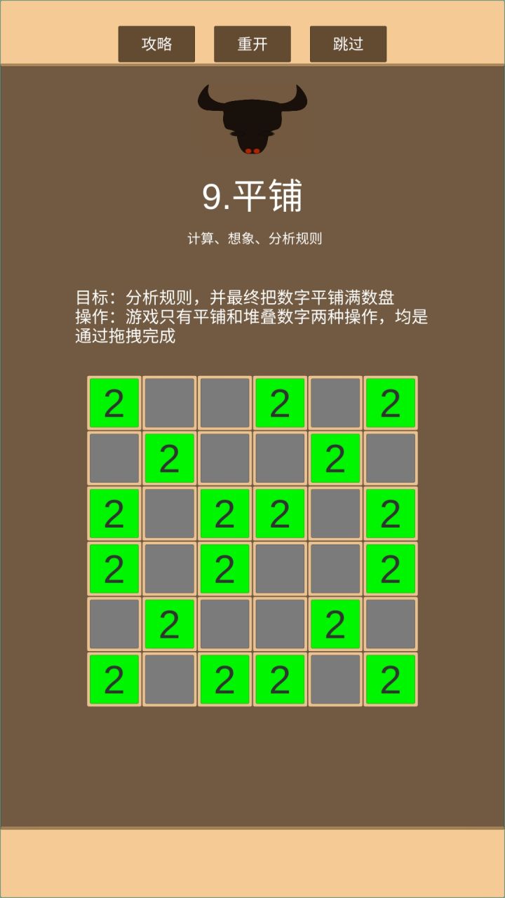2只有绿色数字格子可以作为a格拖拽操作,空格子必为灰色