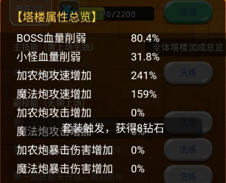本期聊聊全秒的前提条件有哪些 1:宠物。奇遇别点,奇遇别点,奇遇别点,重要的事情说三遍。宠物头盔的品质在85以上(攻速在1.2以上) 2:塔楼。塔楼属性方面,BOSS削血拉满,小怪削弱在70以下 不能再高,攻速拉满神、光炮350,魔、暗炮250,大概就满了。 3:炮台。黑丝组合必备(魔炮罗杰斯+宠物黑瓦斯)再加几个橙炮打百分比伤害(定怪点橙炮百分比在1—2左右)具体根据个人情况而定,减速用高星青莲(6、7、8星各一个,方便微调),一个或两个六星凤翼。 写在最后:前期建议还是先搞饕餮,后期多看视频多研究慢慢过渡到黑丝组合。个人建议氪到V4(好像是二百多,记不清了),不然游戏体验实在太差,而且此次更新对新人及白嫖党来说不太友好(话说哪个游戏不都是忽悠你氪金)