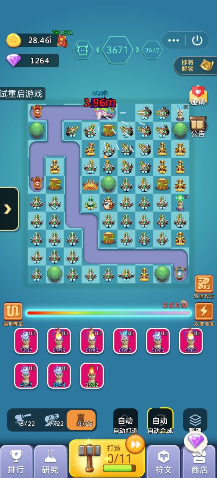 5.符文先升金币,水晶,砖石,打造,敏捷,其他的最好等打造到了15级再升,如果你有V1符文加速合成前期完全不需要升级,飞碟也一样 每天只有60个 一个12分钟不再是以前的无限,每天挂机睡觉用自动点击器10个小时就收完了完全不需要升,因为主要靠圣光输出 符文里魔法炮的 神圣 入魔两个符文也不需要升浪费宝石。