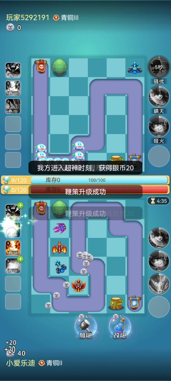 哈哈,赢了个炸裂真不容易。他技能盒子少。不然赢不了。最后时间到了,我剩下的兵少,就是这么巧。